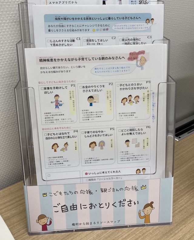 全ての診察室と待合に設置しています。「これがあることで子育てのことや子どものことを話題にしやすい」「イラストがかわいくて手に取りやすい」とのことです。