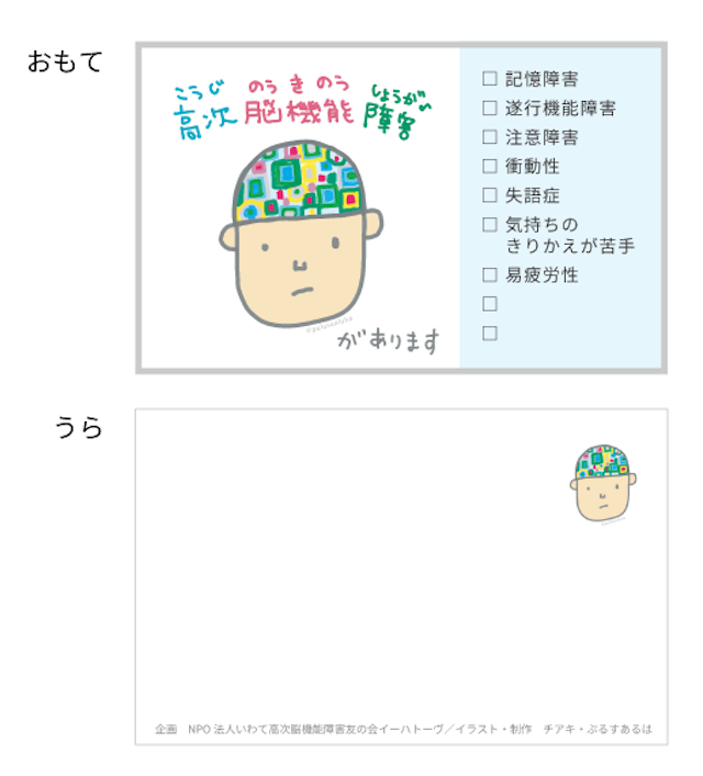 コンパクトなサイズのカードであっても「高次脳機能障害アイコン」にパッと目がいくデザインです。