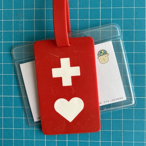 100円ショップのカードケースに入れて、ヘルプマークにつけています