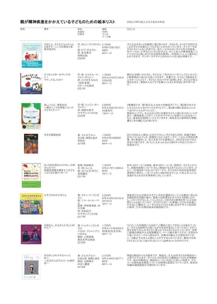 親が精神疾患をかかえている子どものための心理教育絵本を紹介しているコーナーです。
